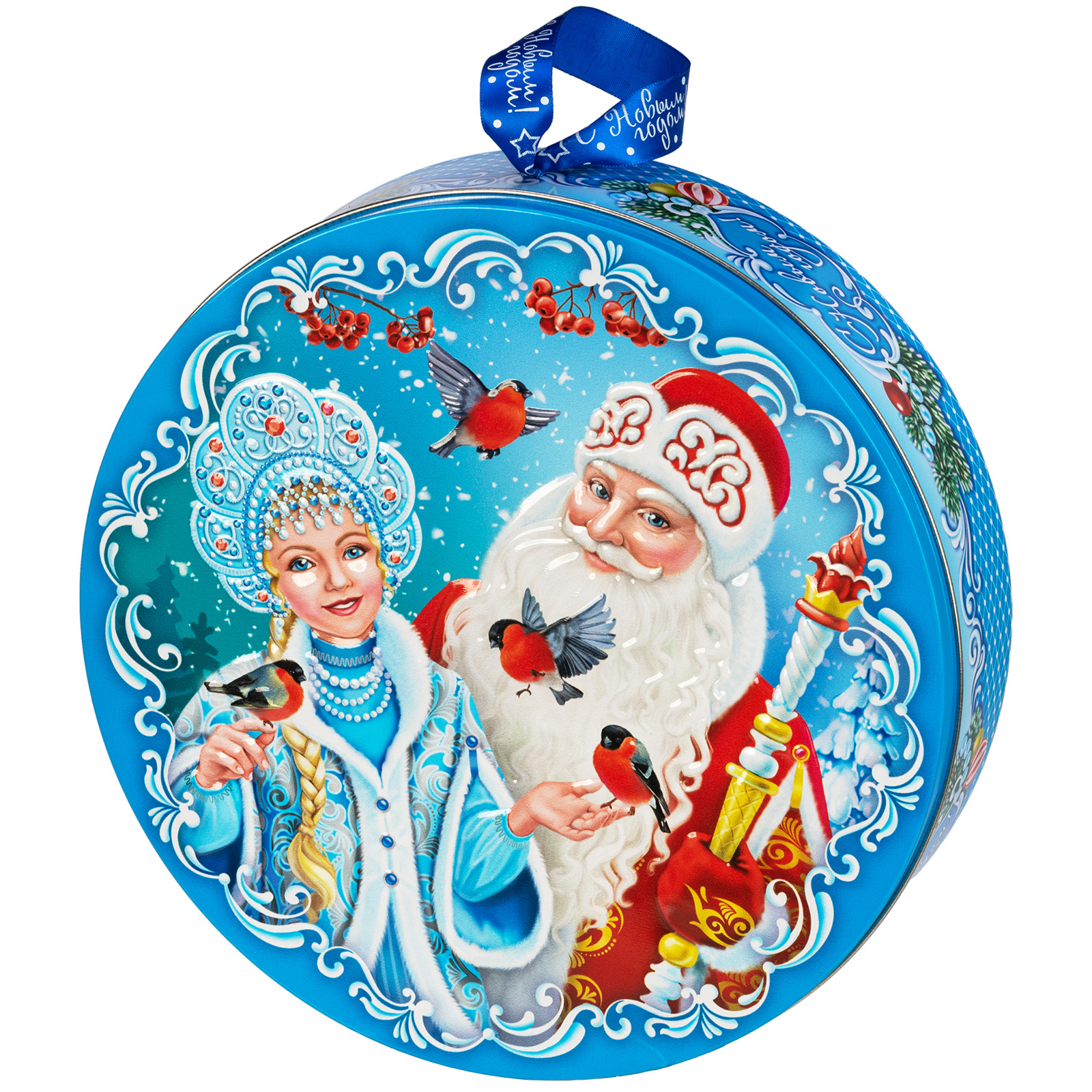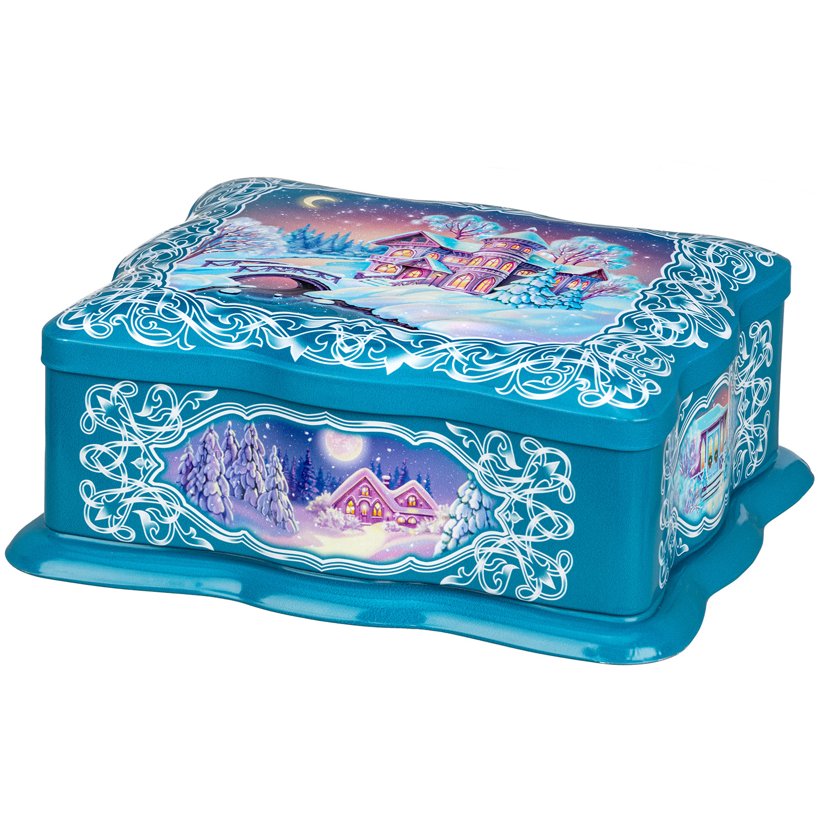 Предлагаем порадовать детей на Новый год и купить для них сладкие подарки в металлической упаковке. Нарядная, красивая, она отличается высокой прочностью и подходит для хранения мелочей после того, как сладости закончатся. Во вместительную тару можно положить до килограмма конфет и десертов.